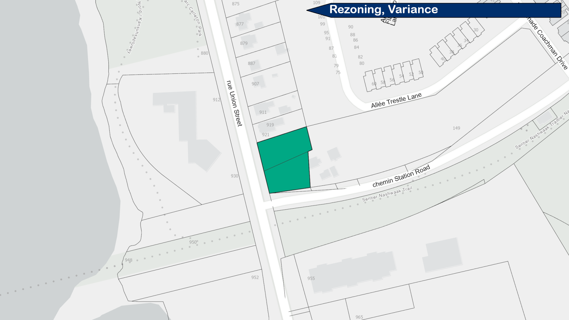 • 1.51m setback variance from a property line abutting a public street (Station Road); and
